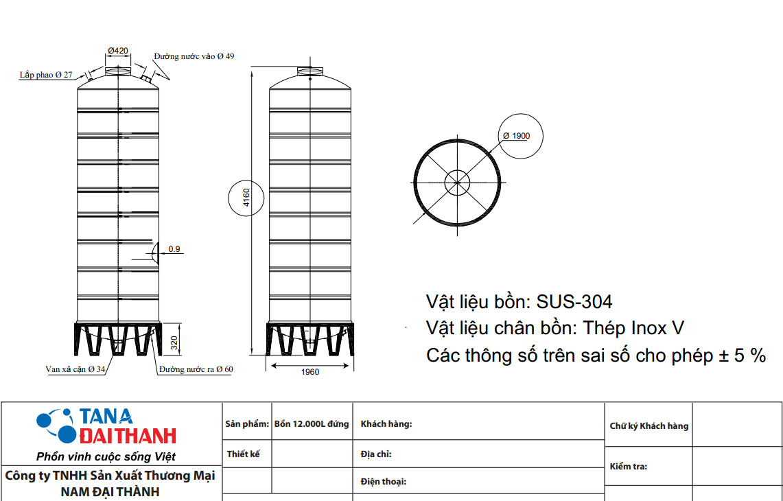 + Khả năng chịu lực: δmin = 4 x (tải trọng của bồn đầy).
